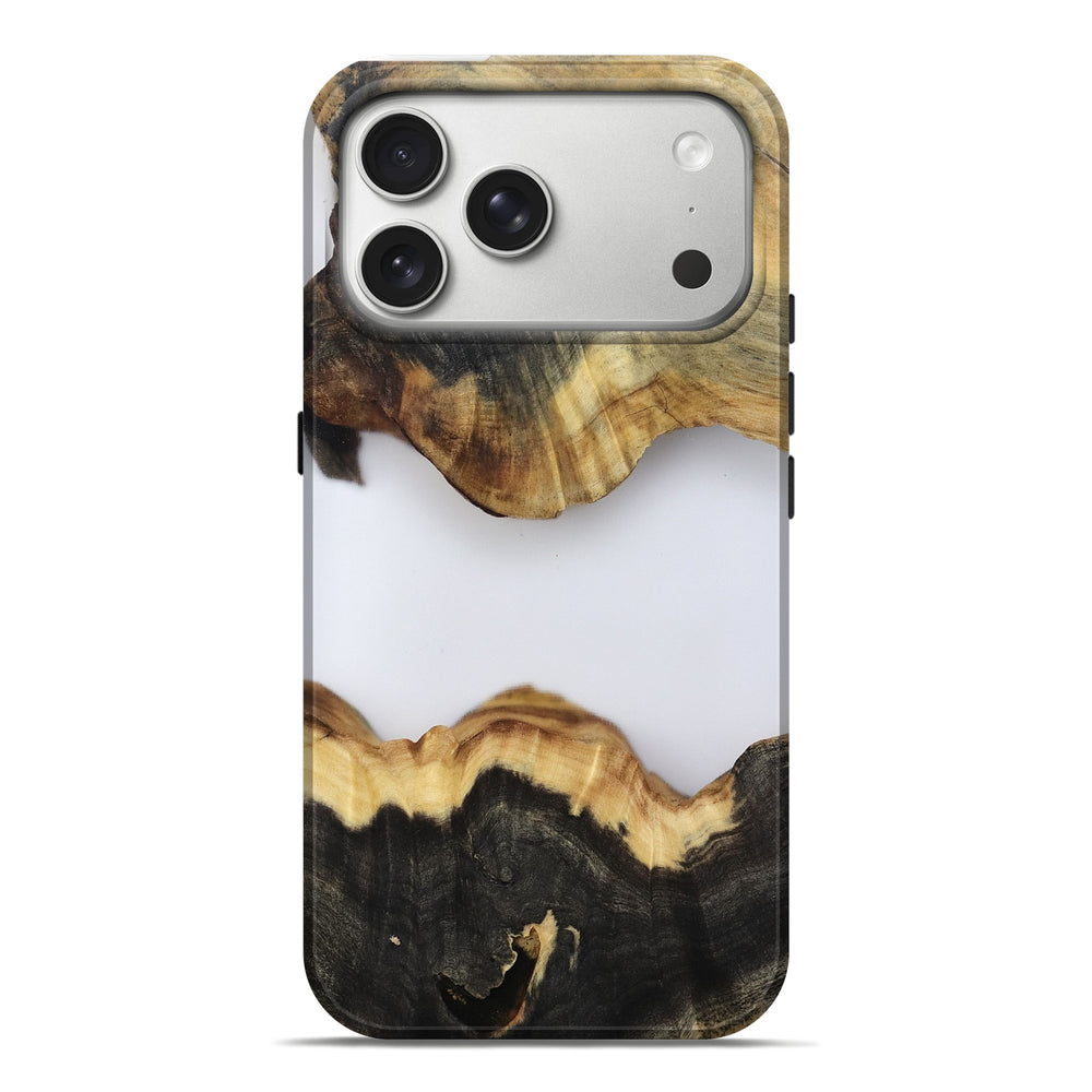 Our Live Edge cases are made from an amazing combination of stabilized wood burl and colored resin. Our stabilization process hardens the wood to protect against cracks and breaks. We do every step of the process at our shop in Northern Indiana. Perfectly fits the iPhone 17 Pro Max.