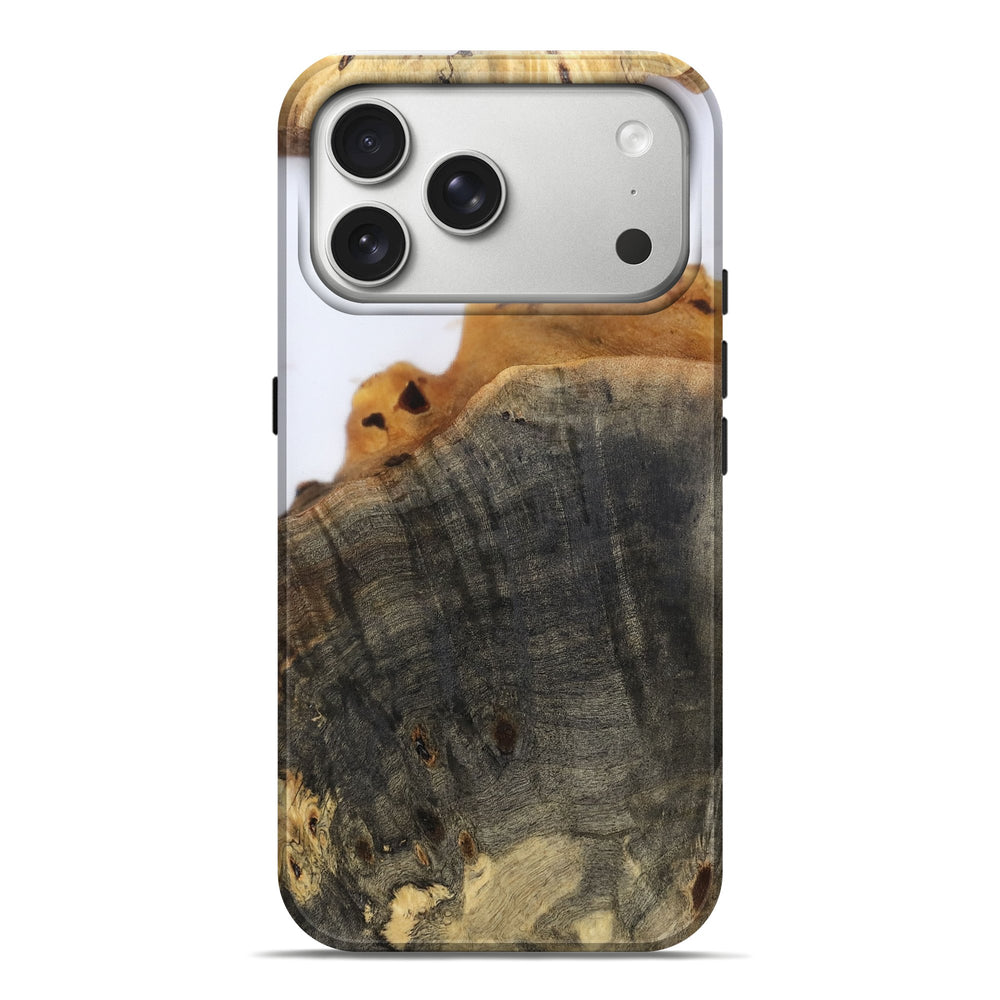 Our Live Edge cases are made from an amazing combination of stabilized wood burl and colored resin. Our stabilization process hardens the wood to protect against cracks and breaks. We do every step of the process at our shop in Northern Indiana. Perfectly fits the iPhone 17 Pro Max.