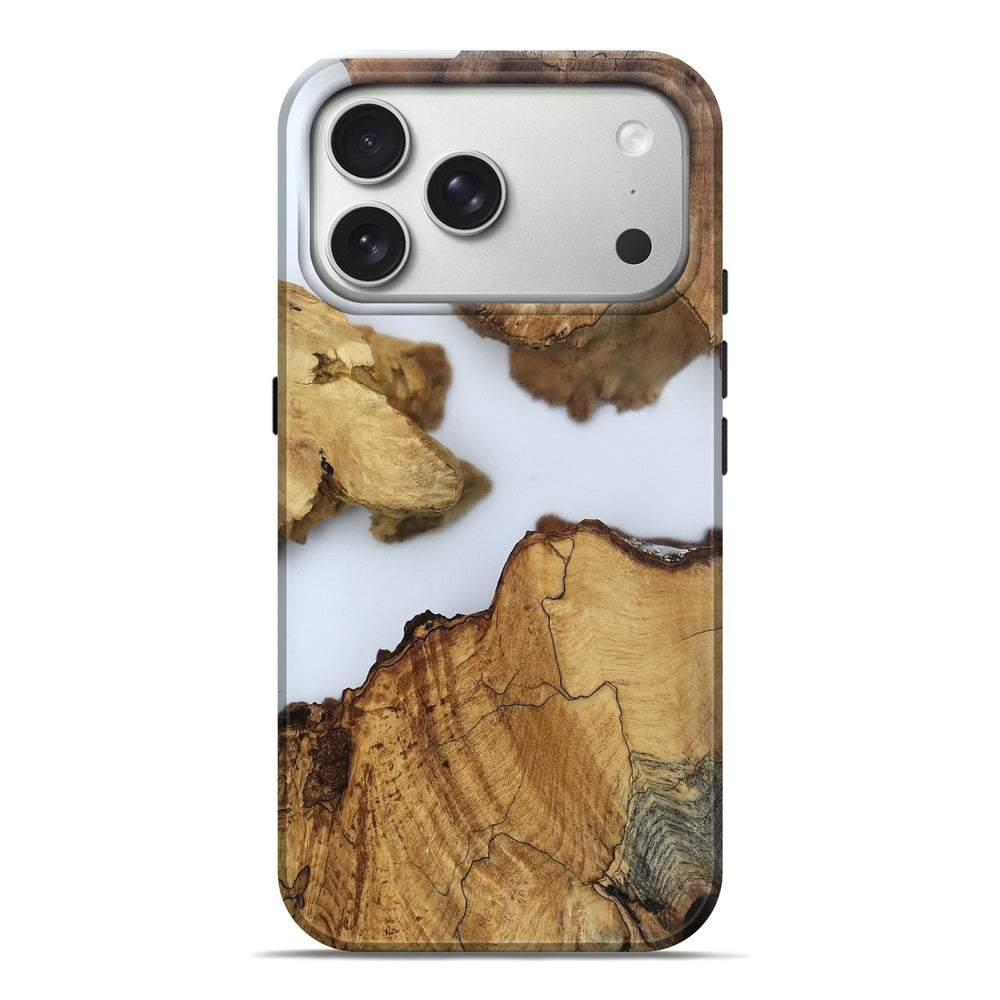 Our Live Edge cases are made from an amazing combination of stabilized wood burl and colored resin. Our stabilization process hardens the wood to protect against cracks and breaks. We do every step of the process at our shop in Northern Indiana. Perfectly fits the iPhone 17 Pro Max.