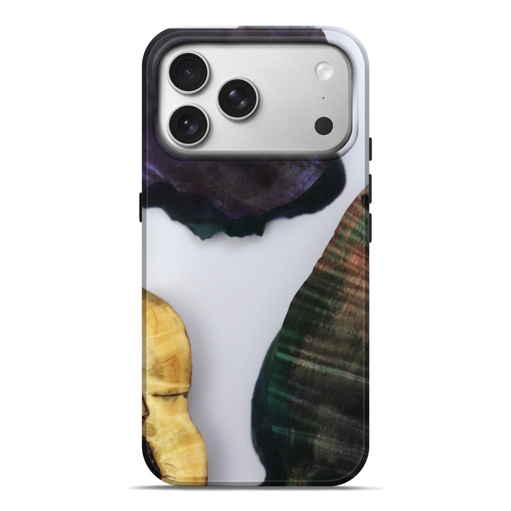 Our Live Edge cases are made from an amazing combination of stabilized wood burl and colored resin. Our stabilization process hardens the wood to protect against cracks and breaks. We do every step of the process at our shop in Northern Indiana. Perfectly fits the iPhone 17 Pro Max.