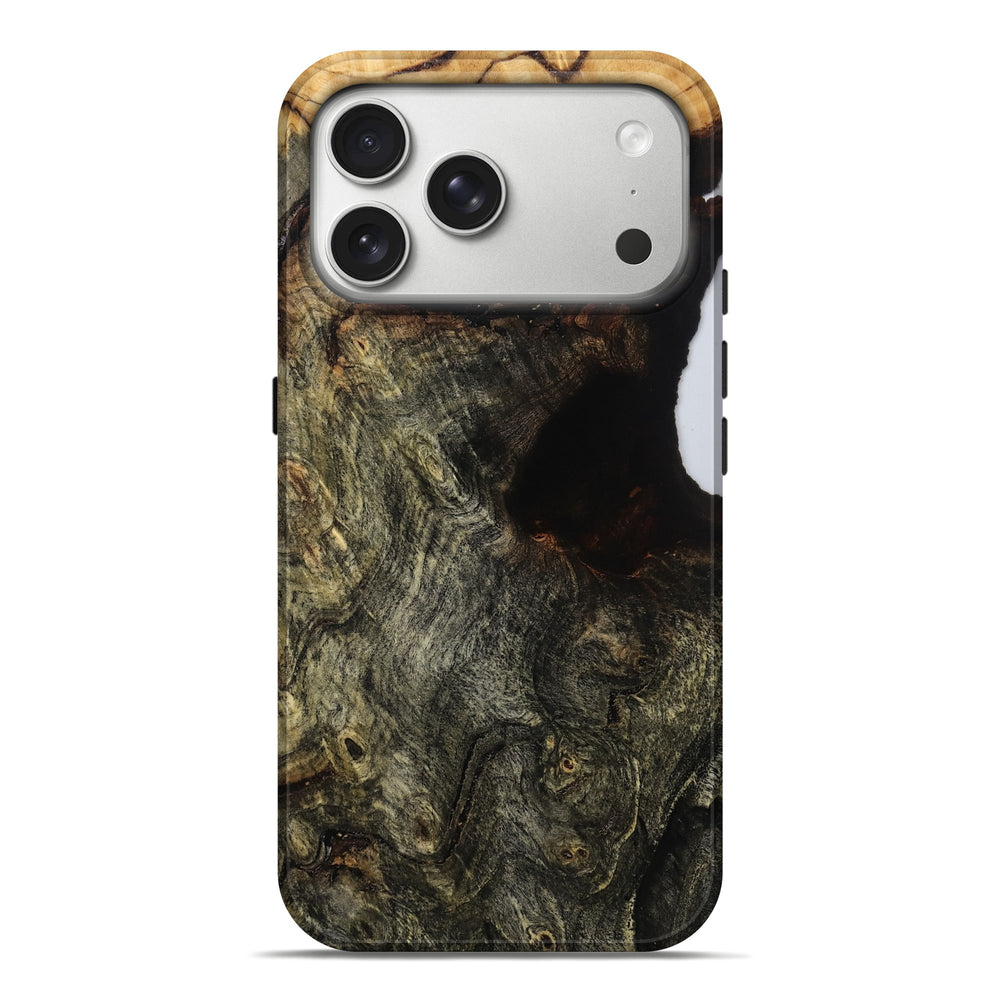 Our Live Edge cases are made from an amazing combination of stabilized wood burl and colored resin. Our stabilization process hardens the wood to protect against cracks and breaks. We do every step of the process at our shop in Northern Indiana. Perfectly fits the iPhone 17 Pro Max.
