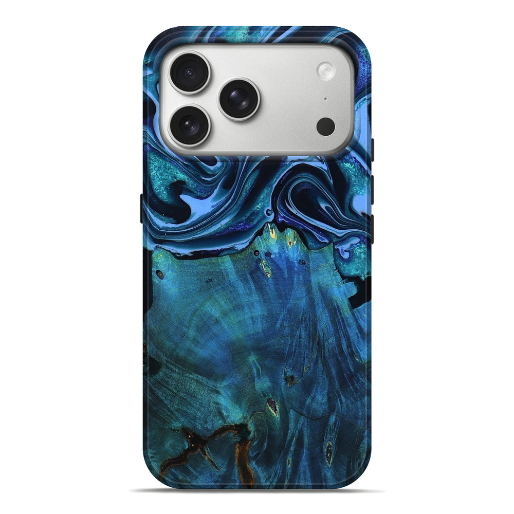 Our Live Edge cases are made from an amazing combination of stabilized wood burl and colored resin. Our stabilization process hardens the wood to protect against cracks and breaks. We do every step of the process at our shop in Northern Indiana. Perfectly fits the iPhone 17 Pro Max.