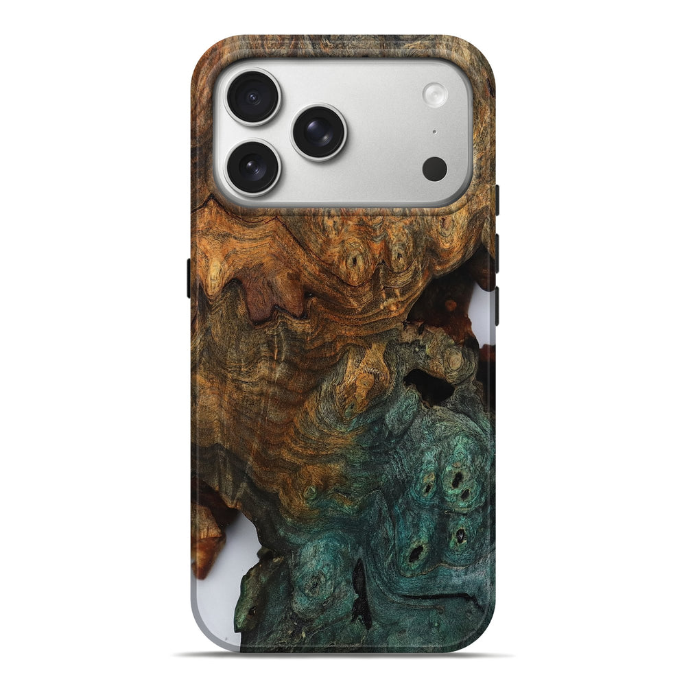 Our Live Edge cases are made from an amazing combination of stabilized wood burl and colored resin. Our stabilization process hardens the wood to protect against cracks and breaks. We do every step of the process at our shop in Northern Indiana. Perfectly fits the iPhone 17 Pro Max.