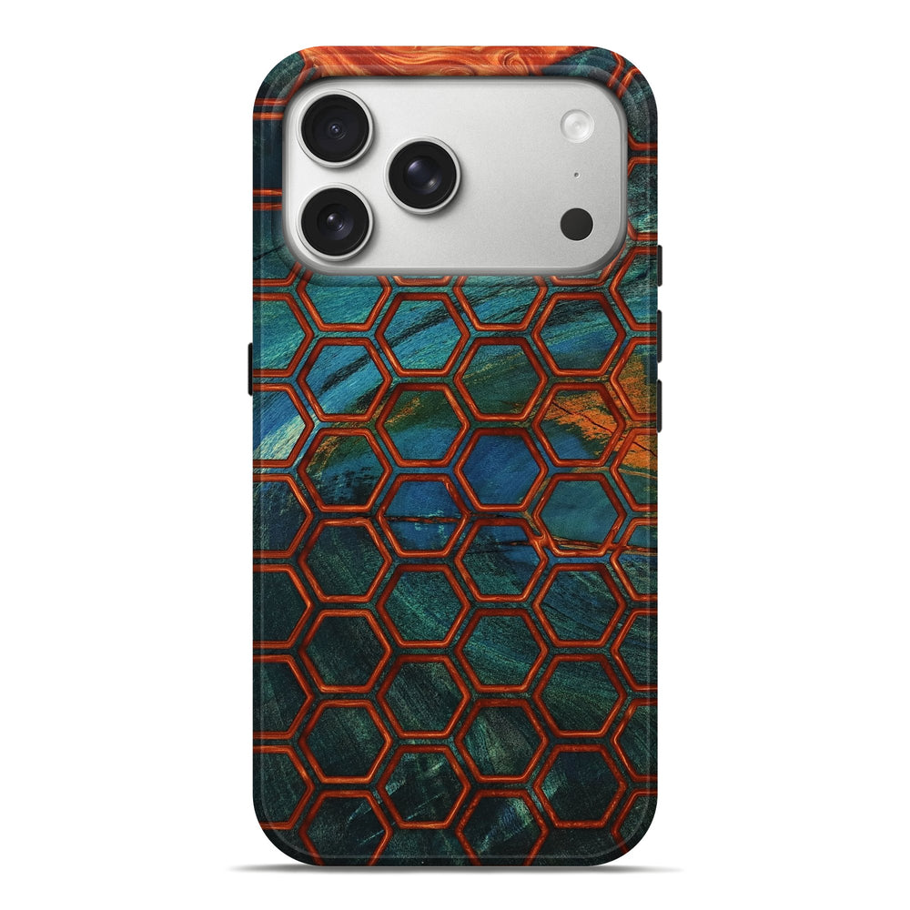 Our Live Edge cases are made from an amazing combination of stabilized wood burl and colored resin. Our stabilization process hardens the wood to protect against cracks and breaks. We do every step of the process at our shop in Northern Indiana. Perfectly fits the iPhone 17 Pro Max.