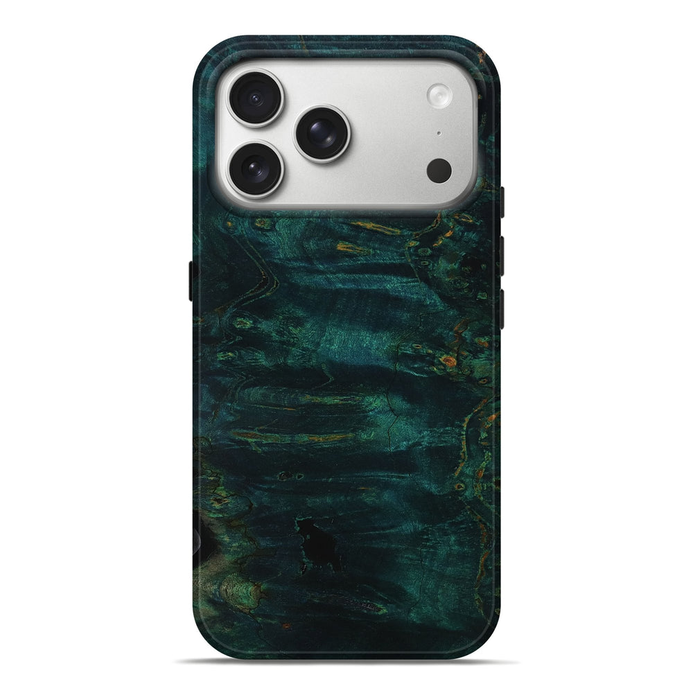 Our Live Edge cases are made from an amazing combination of stabilized wood burl and colored resin. Our stabilization process hardens the wood to protect against cracks and breaks. We do every step of the process at our shop in Northern Indiana. Perfectly fits the iPhone 17 Pro Max.