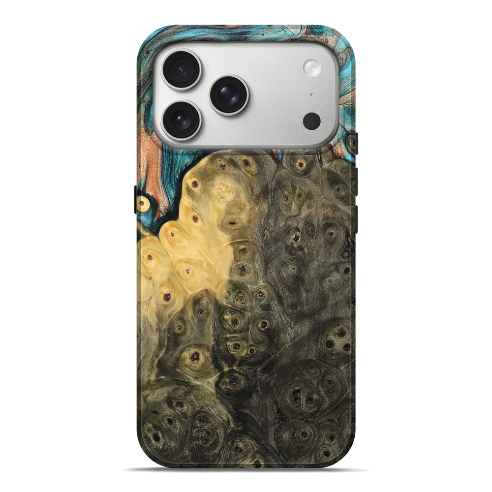 Our Live Edge cases are made from an amazing combination of stabilized wood burl and colored resin. Our stabilization process hardens the wood to protect against cracks and breaks. We do every step of the process at our shop in Northern Indiana. Perfectly fits the iPhone 17 Pro Max.