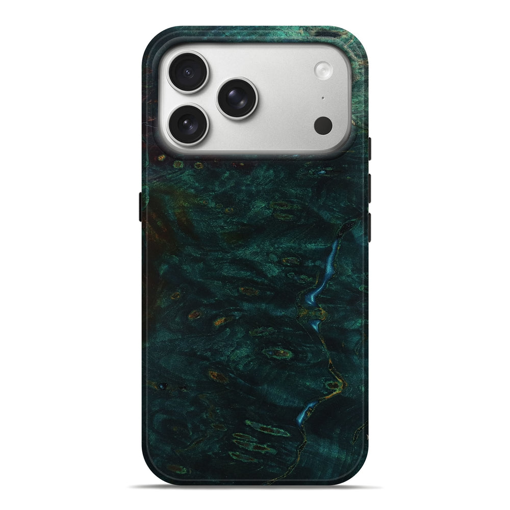 Our Live Edge cases are made from an amazing combination of stabilized wood burl and colored resin. Our stabilization process hardens the wood to protect against cracks and breaks. We do every step of the process at our shop in Northern Indiana. Perfectly fits the iPhone 17 Pro Max.
