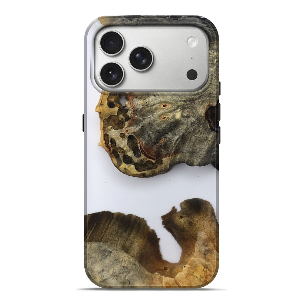 Our Live Edge cases are made from an amazing combination of stabilized wood burl and colored resin. Our stabilization process hardens the wood to protect against cracks and breaks. We do every step of the process at our shop in Northern Indiana. Perfectly fits the iPhone 17 Pro Max.