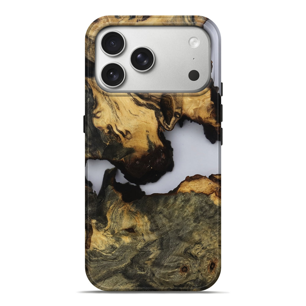 Our Live Edge cases are made from an amazing combination of stabilized wood burl and colored resin. Our stabilization process hardens the wood to protect against cracks and breaks. We do every step of the process at our shop in Northern Indiana. Perfectly fits the iPhone 17 Pro Max.