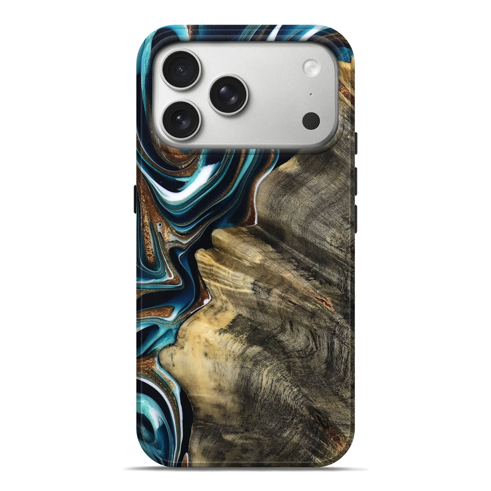 Our Live Edge cases are made from an amazing combination of stabilized wood burl and colored resin. Our stabilization process hardens the wood to protect against cracks and breaks. We do every step of the process at our shop in Northern Indiana. Perfectly fits the iPhone 17 Pro Max.
