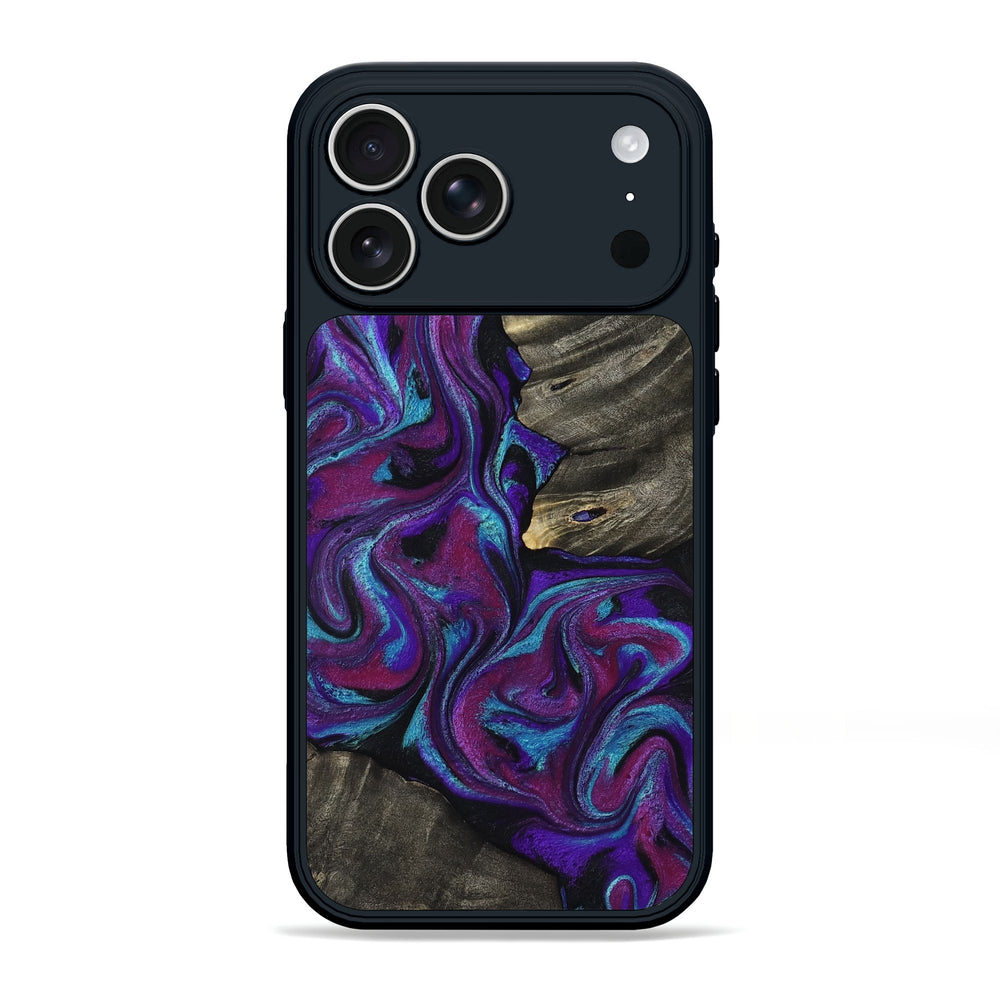 Alva features a beautiful swirl of vibrant purple and blue tones against a warm, natural wood backdrop. The flowing pattern creates a sense of movement, making it visually striking and unique.