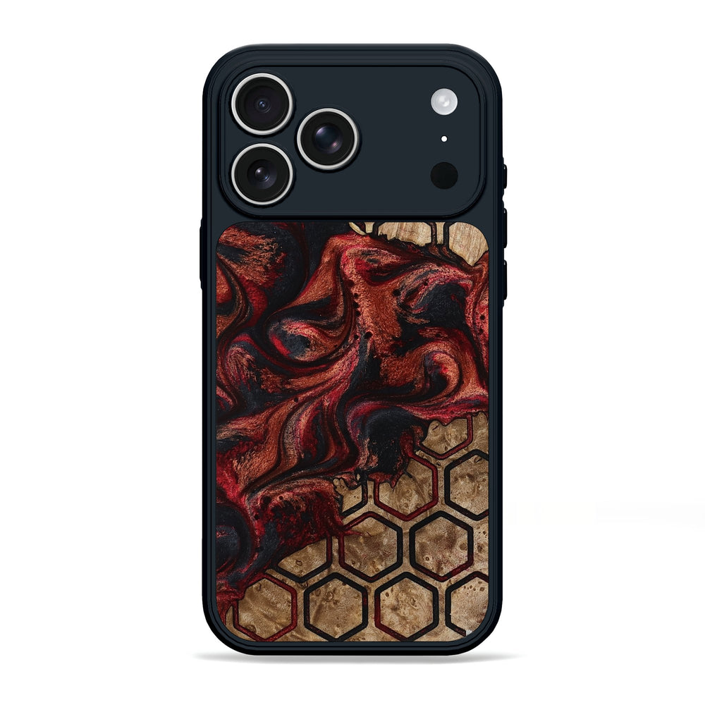 Alexys has a warm blend of red and black tones swirling across its surface. The honeycomb pattern adds a modern touch to its natural beauty.