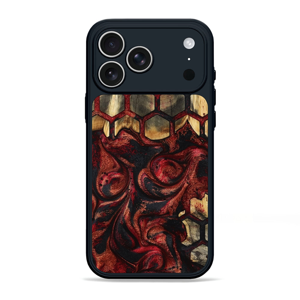 Domenic has a striking honeycomb pattern that blends rich reds and deep blacks. The wood showcases smooth swirls that add a sense of movement and warmth.