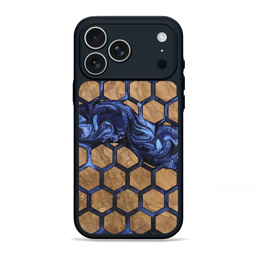 Dorthy features beautiful Maple wood with a warm, natural finish. It has a striking honeycomb pattern that contrasts nicely with swirls of deep blue.