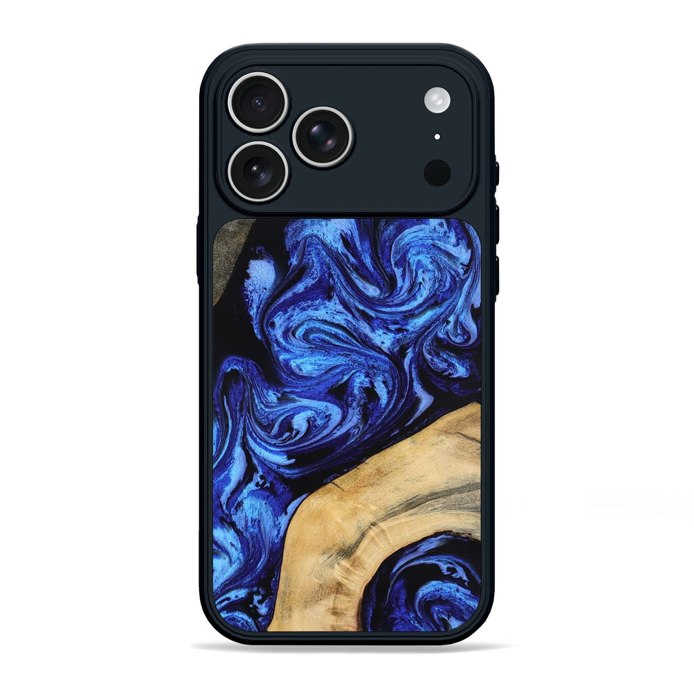 Mariana has beautiful swirls of deep blue that create a striking contrast with the lighter wood tones. The smooth patterns across the surface give it a unique and artistic feel.