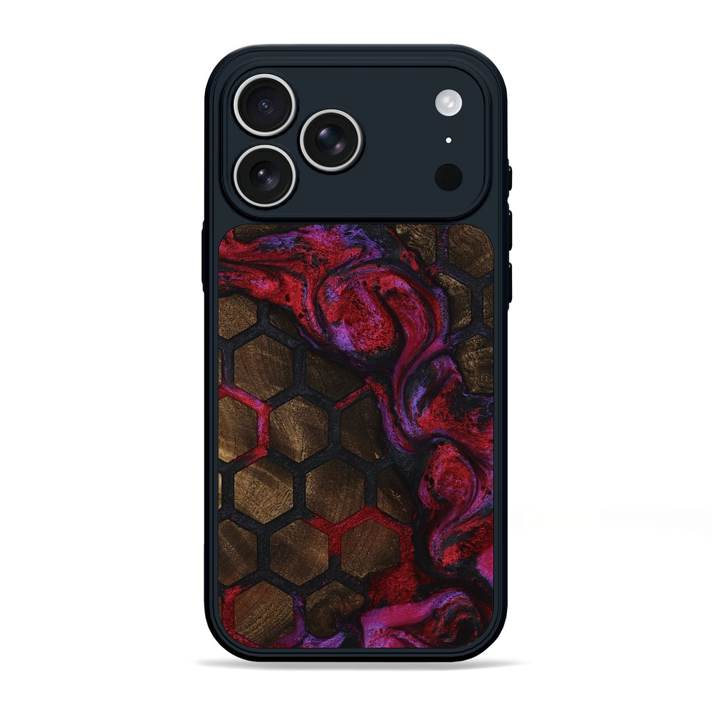 Ryder is a striking piece of Maple wood featuring a bold hexagonal pattern. Its smooth grain contrasts beautifully with vibrant swirls of color, creating a unique and eye-catching design.