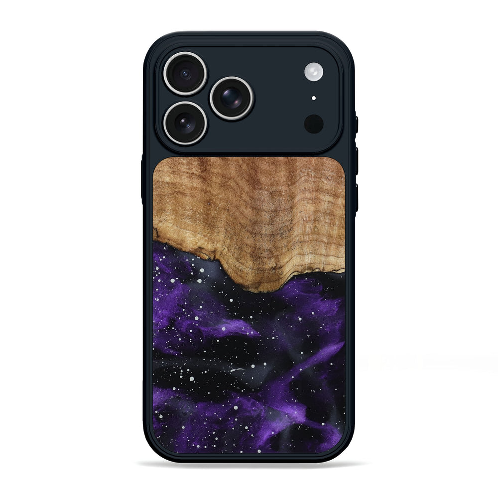 Yadira has a warm, rich maple wood grain that adds a natural charm. The vibrant purple and black below create a striking contrast, resembling a dreamy night sky.