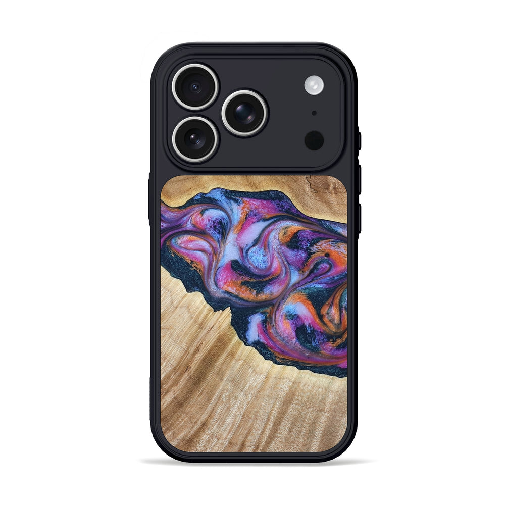 Lina has a beautiful blend of warm maple wood tones and vibrant colors swirling together. The pattern creates a striking contrast, adding depth and interest to the piece.