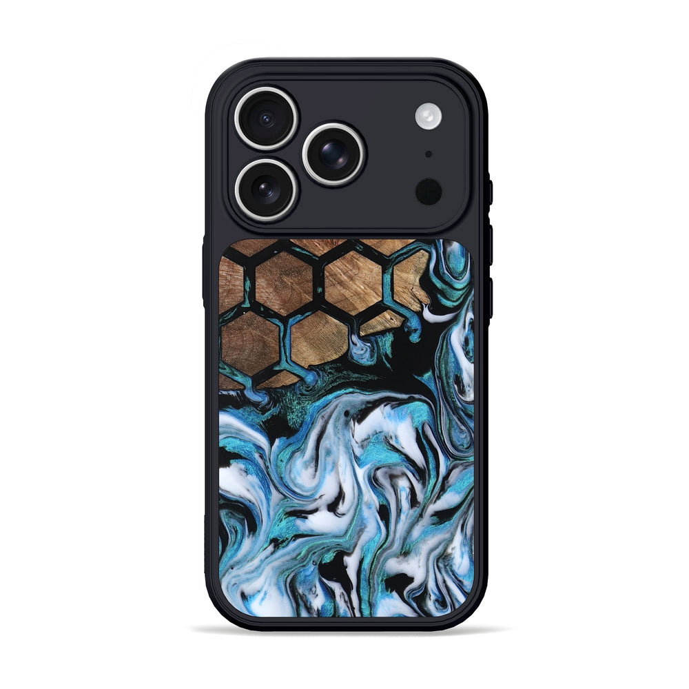 Maliyah has a warm Maple wood base with a striking honeycomb pattern. The swirls of blue and white create a beautiful contrast, adding a sense of movement and depth.