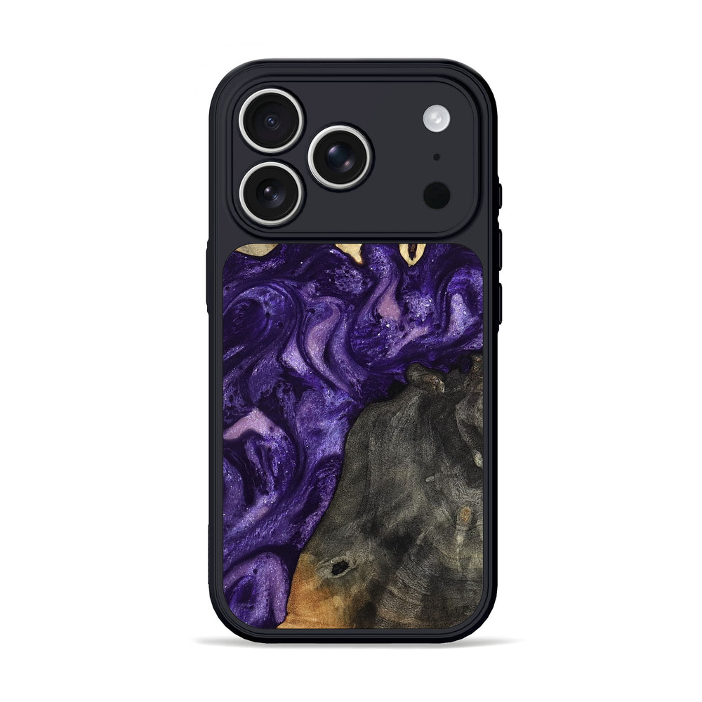 Collins has a striking mix of rich purple tones swirling across its surface. The wood shows beautiful natural grains that contrast with the vibrant colors, creating a unique artistic pattern.