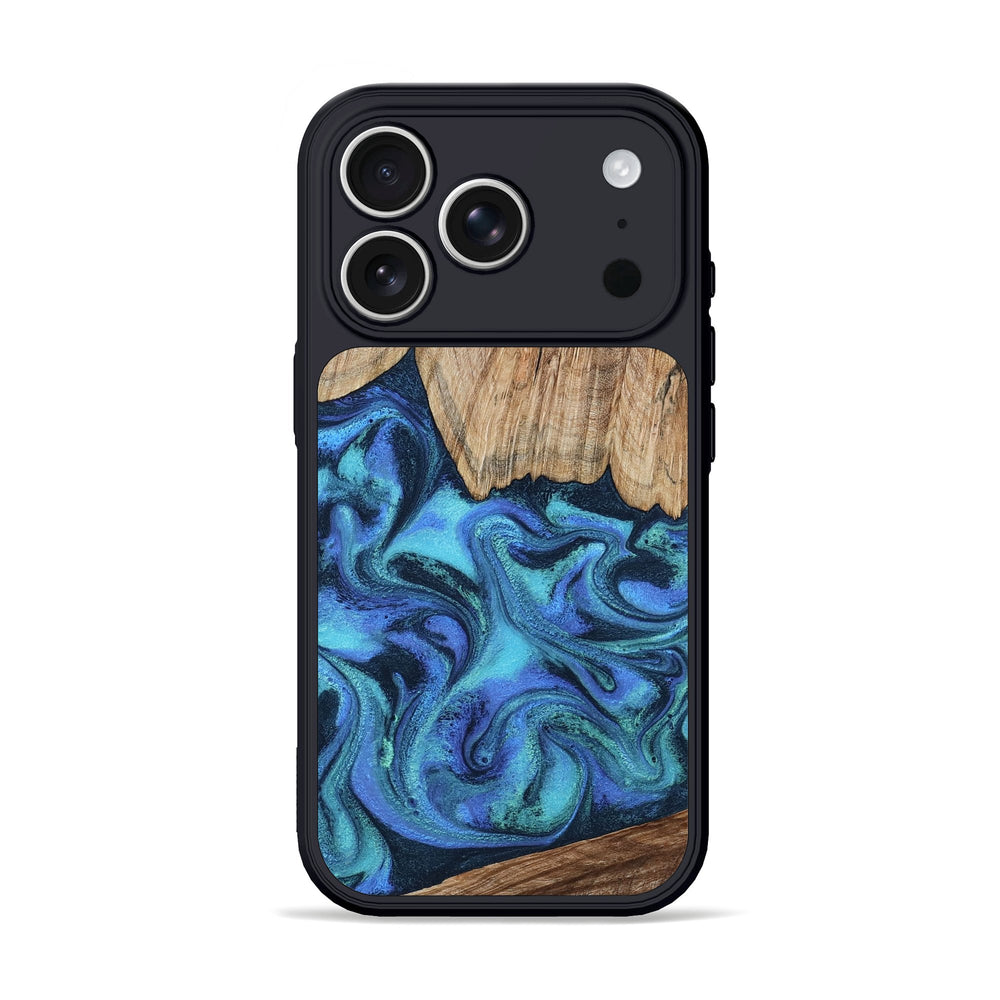 Leslie is a striking maple wood piece with smooth, flowing patterns in shades of blue and teal. Its natural grains complement the vibrant colors, creating a soothing visual harmony.