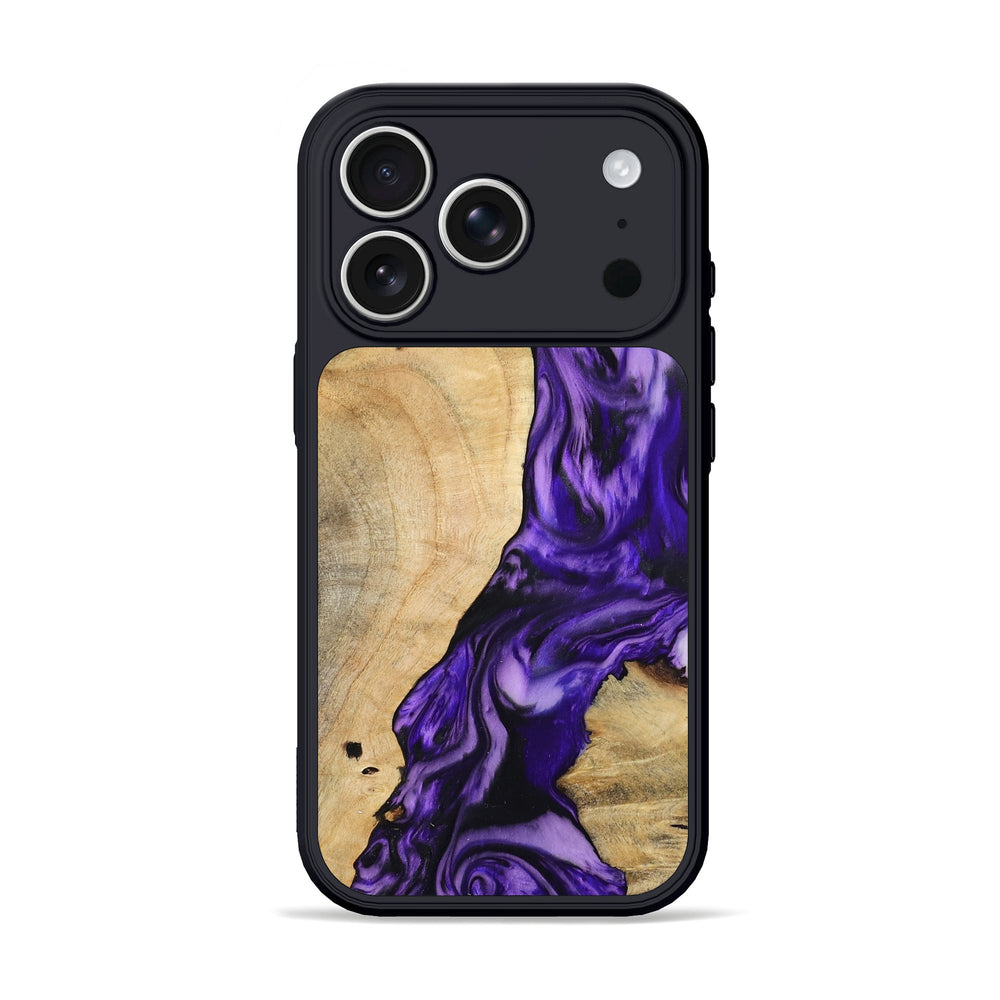 Maxwell has a warm, natural wood surface with swirling patterns in rich purple hues. The contrast between the light wood and vibrant color creates an eye-catching design.