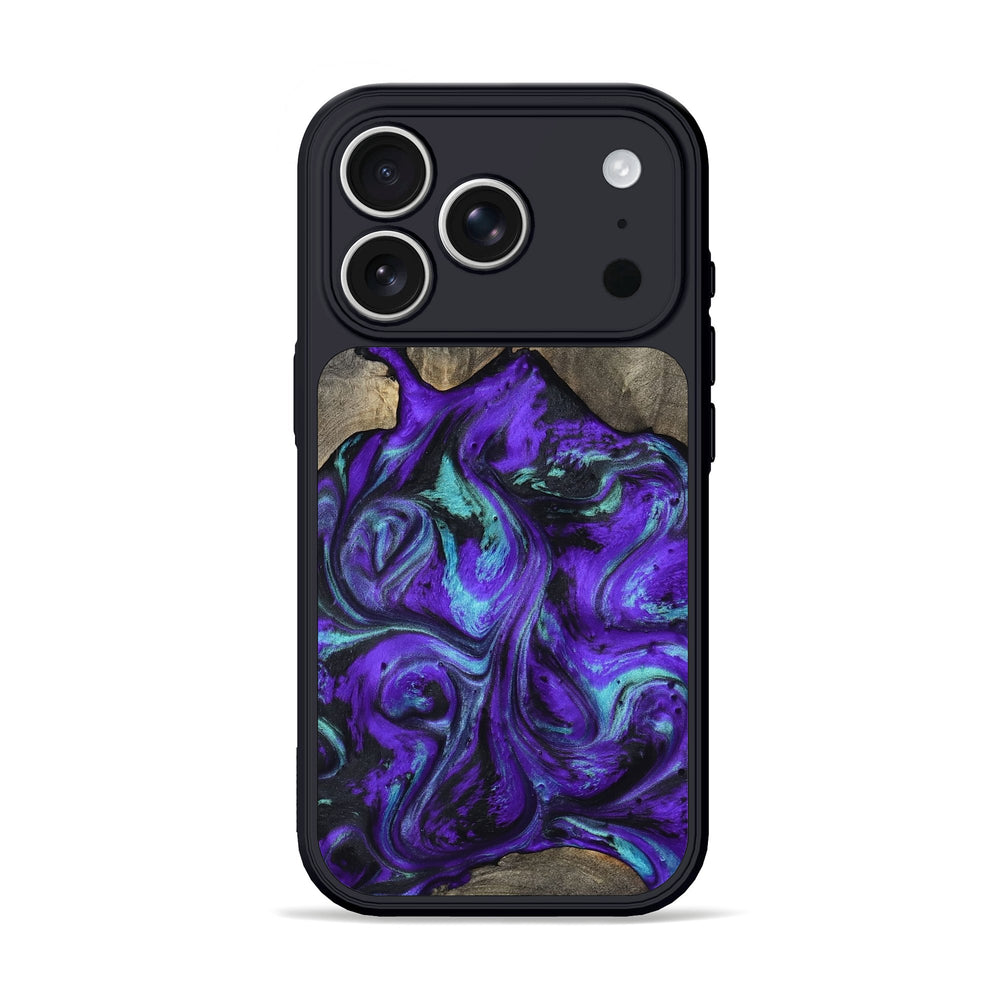 Wesley has a beautiful blend of deep purple and bright blue swirls. The wood's natural grain creates a lovely contrast against the bold colors.
