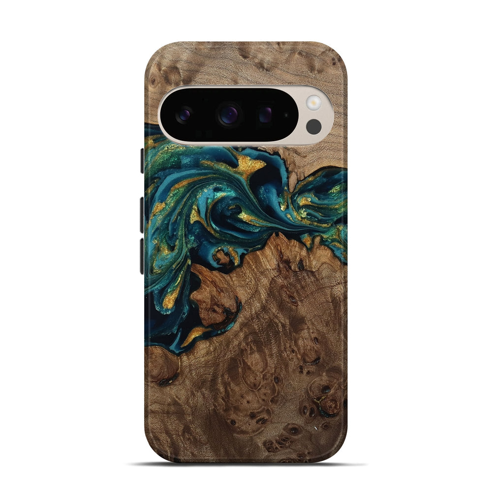 Our Live Edge cases are made from an amazing combination of stabilized wood burl and colored resin. Our stabilization process hardens the wood to protect against cracks and breaks. We do every step of the process at our shop in Northern Indiana. Perfectly fits the Pixel 10.