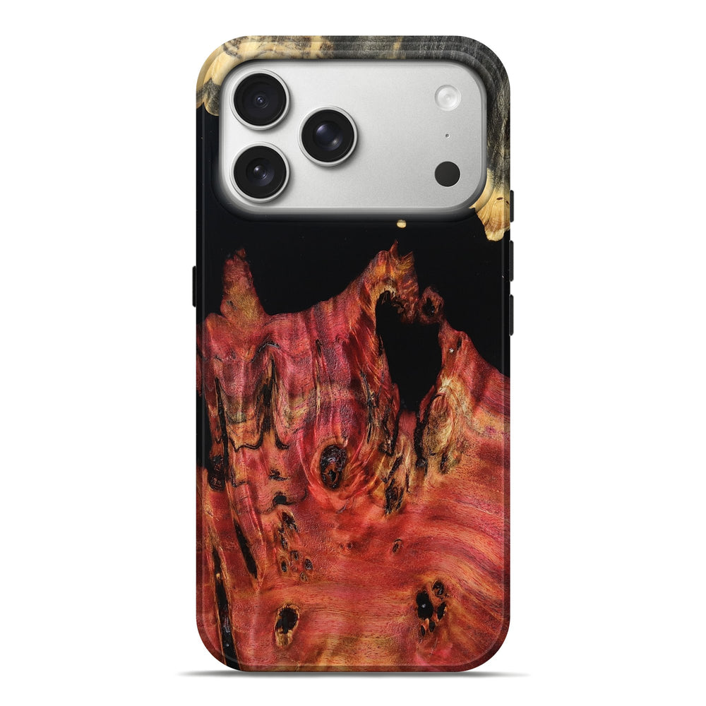 Our Live Edge cases are made from an amazing combination of stabilized wood burl and colored resin. Our stabilization process hardens the wood to protect against cracks and breaks. We do every step of the process at our shop in Northern Indiana. Perfectly fits the iPhone 17 Pro Max.