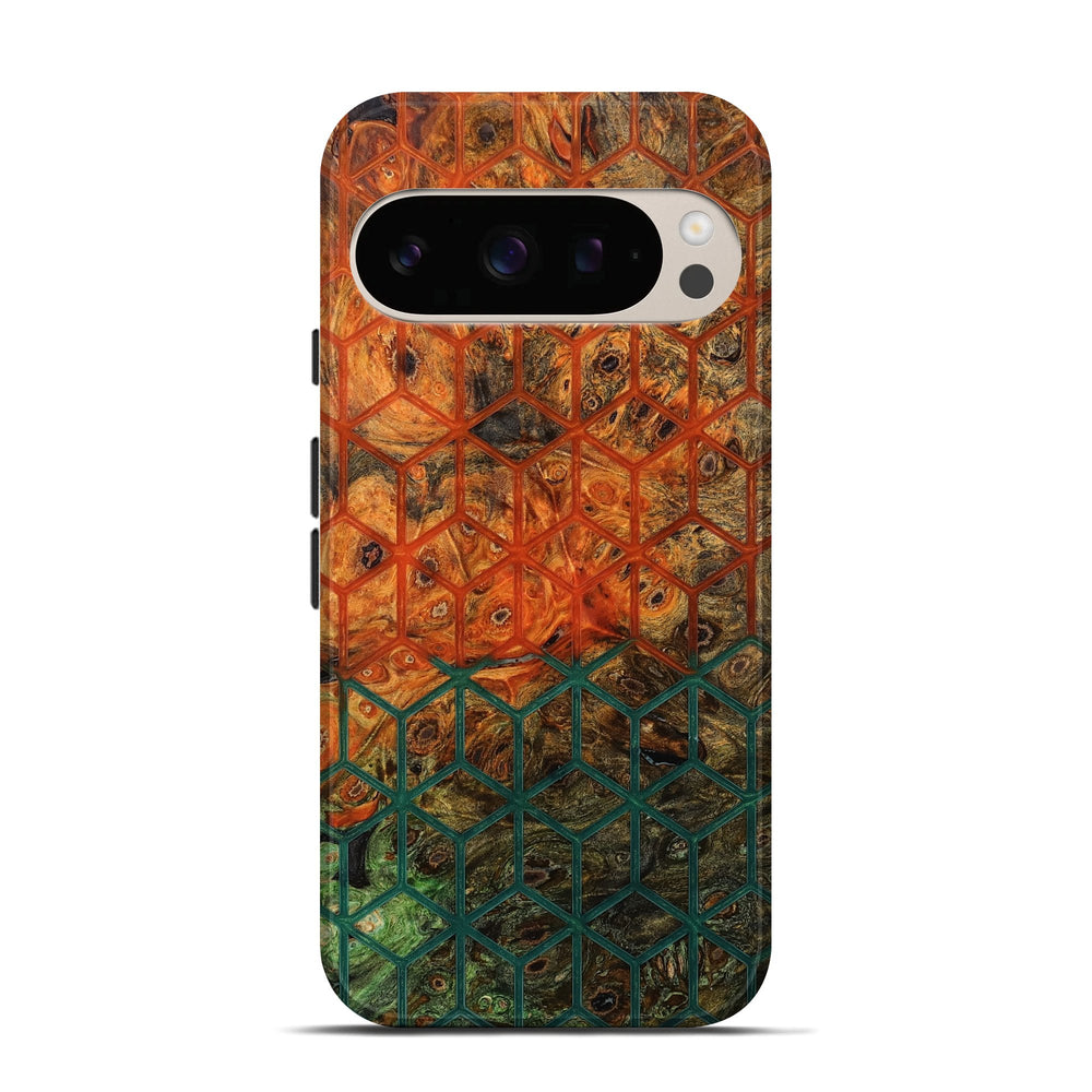 Our Live Edge cases are made from an amazing combination of stabilized wood burl and colored resin. Our stabilization process hardens the wood to protect against cracks and breaks. We do every step of the process at our shop in Northern Indiana. Perfectly fits the Pixel 10 Pro.