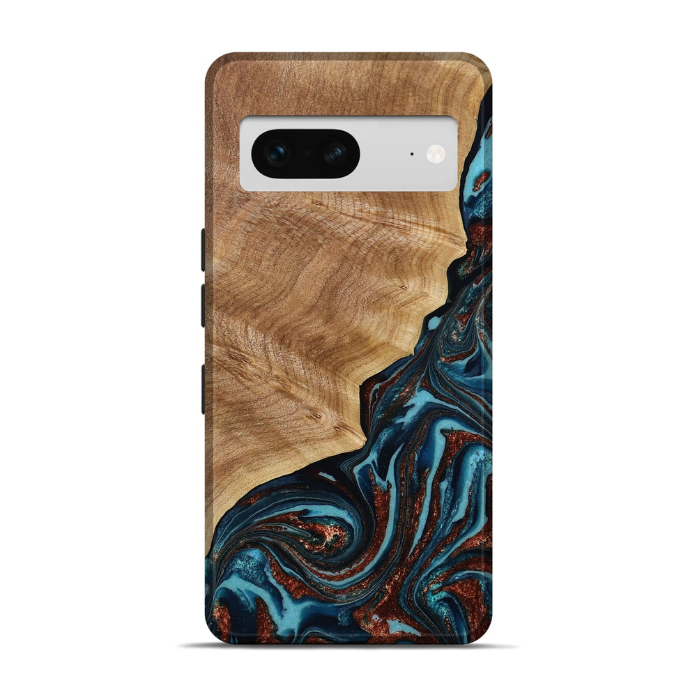 Our Live Edge cases are made from an amazing combination of stabilized wood burl and colored resin. Our stabilization process hardens the wood to protect against cracks and breaks. We do every step of the process at our shop in Northern Indiana. Perfectly fits the Pixel 7.