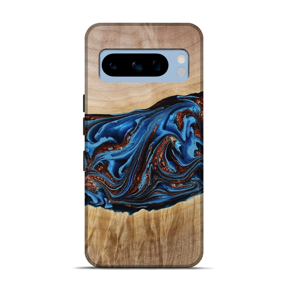 Our Live Edge cases are made from an amazing combination of stabilized wood burl and colored resin. Our stabilization process hardens the wood to protect against cracks and breaks. We do every step of the process at our shop in Northern Indiana. Perfectly fits the Pixel 8 Pro.