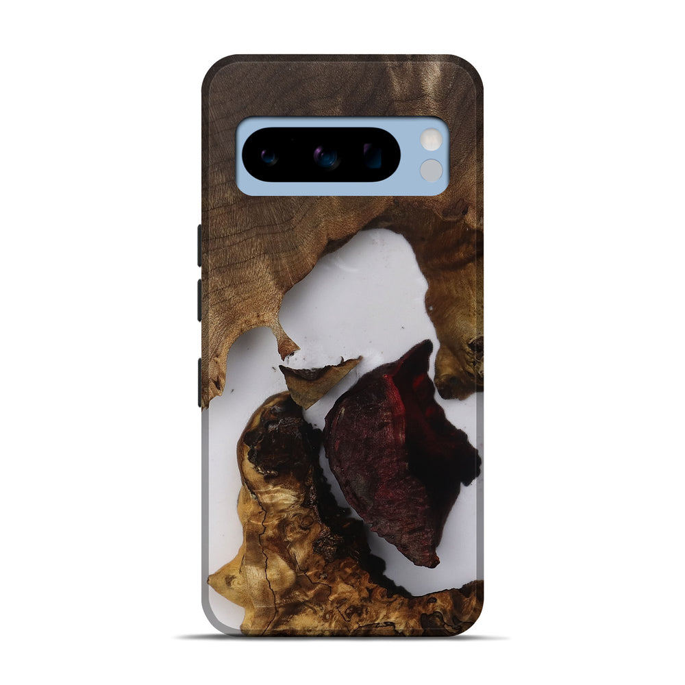 Our Live Edge cases are made from an amazing combination of stabilized wood burl and colored resin. Our stabilization process hardens the wood to protect against cracks and breaks. We do every step of the process at our shop in Northern Indiana. Perfectly fits the Pixel 8 Pro.