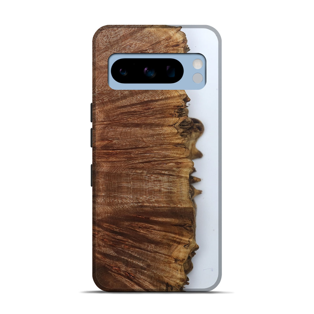 Our Live Edge cases are made from an amazing combination of stabilized wood burl and colored resin. Our stabilization process hardens the wood to protect against cracks and breaks. We do every step of the process at our shop in Northern Indiana. Perfectly fits the Pixel 8 Pro.