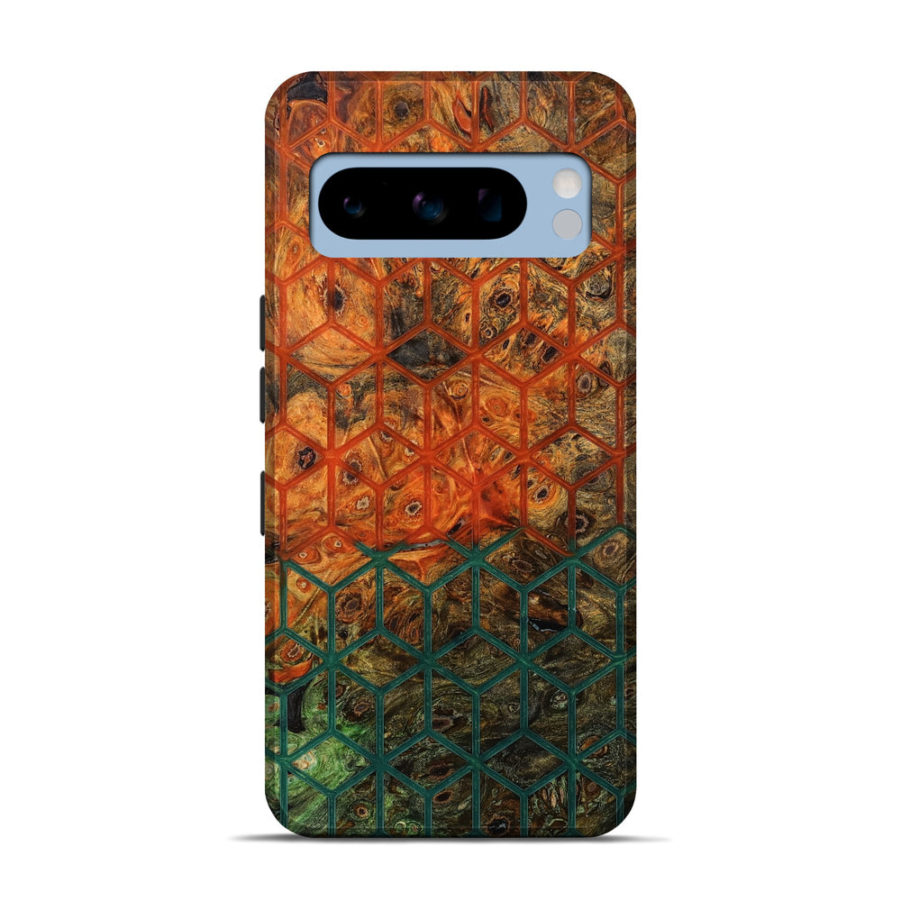 Our Live Edge cases are made from an amazing combination of stabilized wood burl and colored resin. Our stabilization process hardens the wood to protect against cracks and breaks. We do every step of the process at our shop in Northern Indiana. Perfectly fits the Pixel 8 Pro.