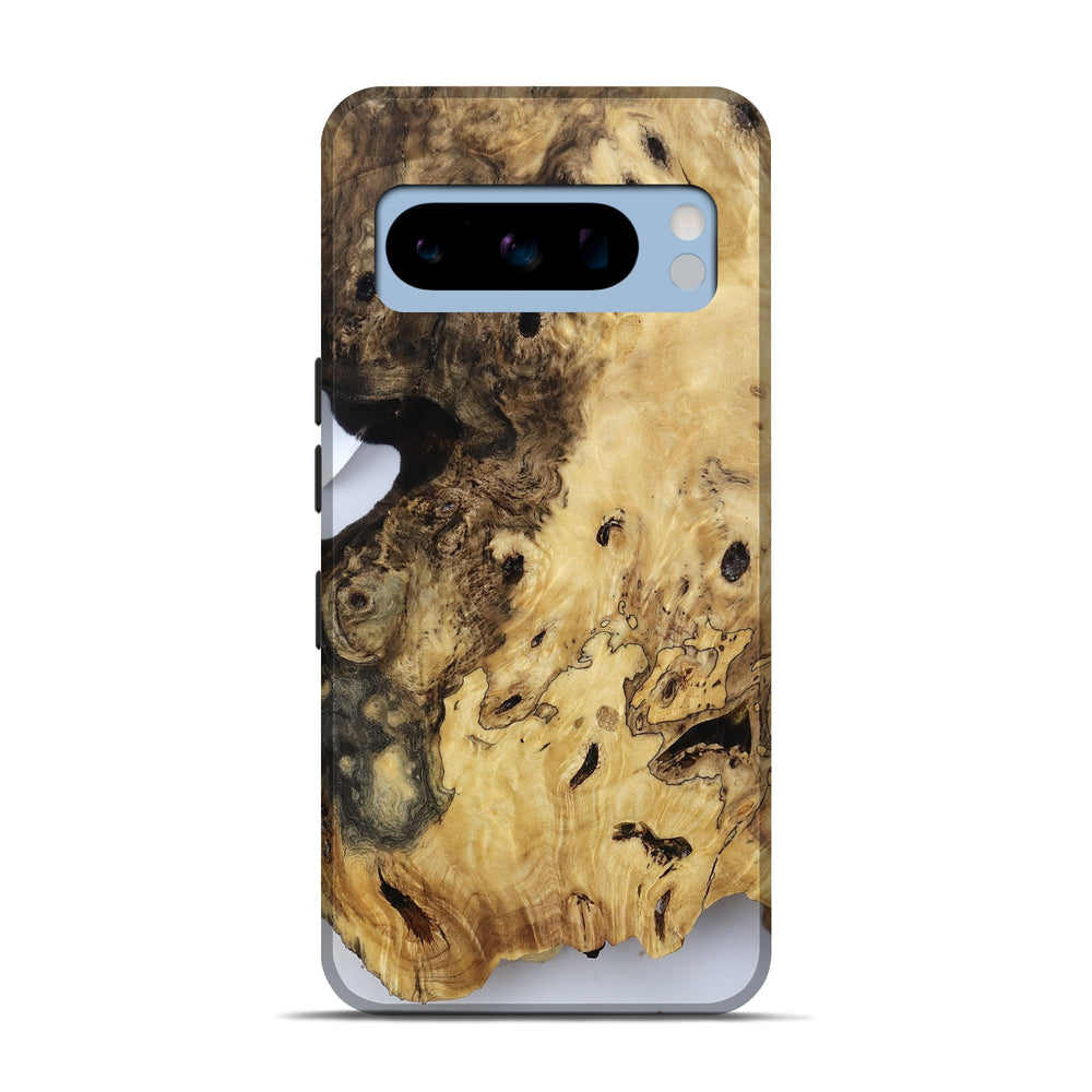 Our Live Edge cases are made from an amazing combination of stabilized wood burl and colored resin. Our stabilization process hardens the wood to protect against cracks and breaks. We do every step of the process at our shop in Northern Indiana. Perfectly fits the Pixel 8 Pro.