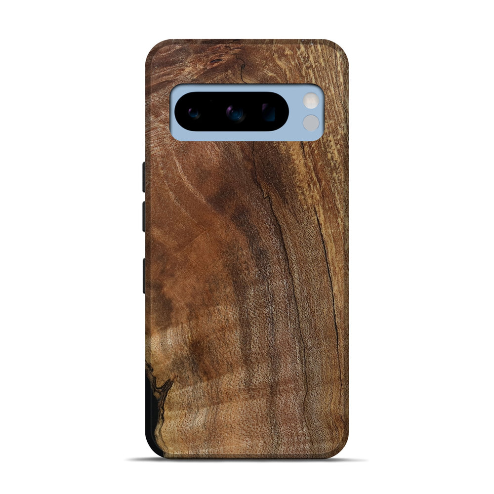 Our Live Edge cases are made from an amazing combination of stabilized wood burl and colored resin. Our stabilization process hardens the wood to protect against cracks and breaks. We do every step of the process at our shop in Northern Indiana. Perfectly fits the Pixel 8 Pro.