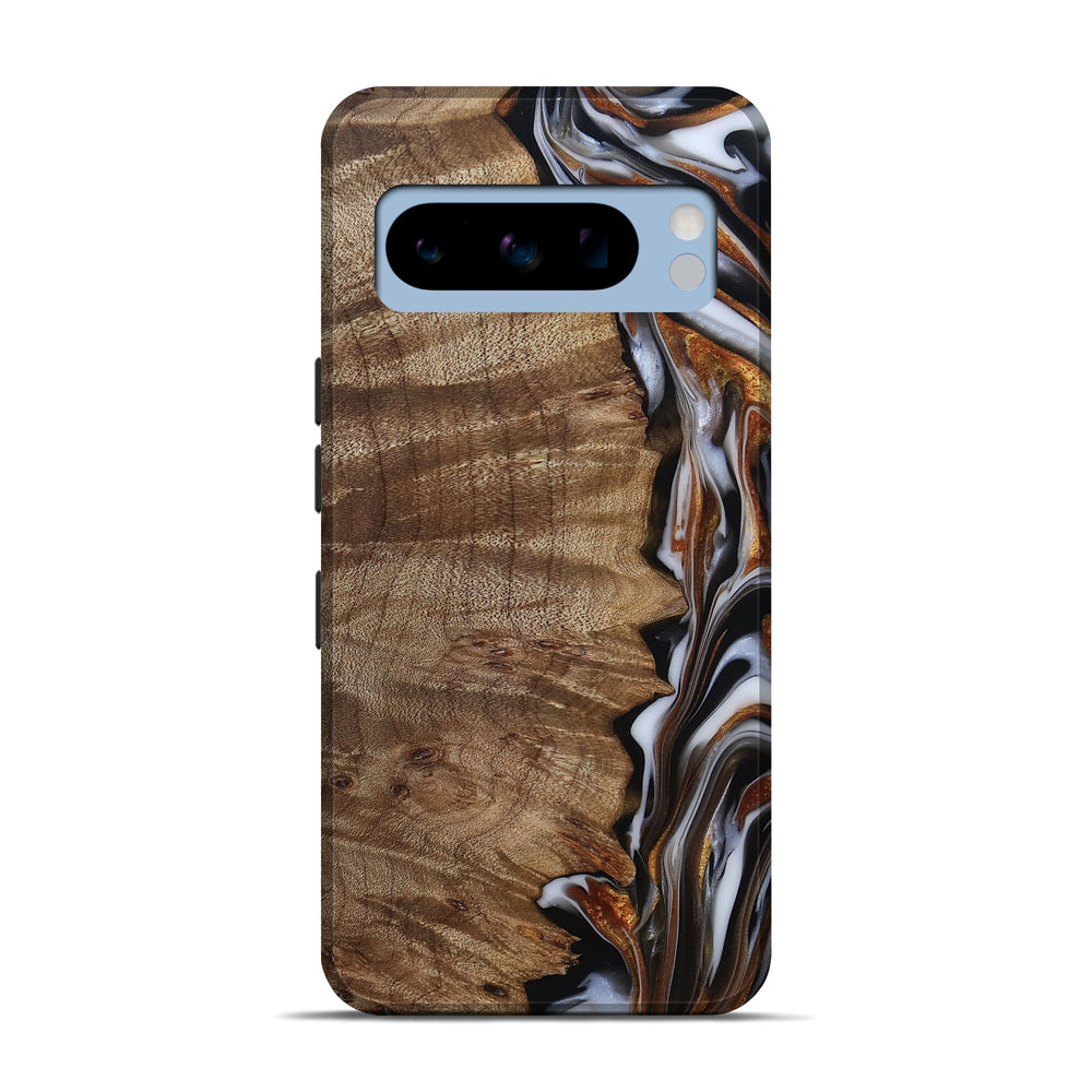 Our Live Edge cases are made from an amazing combination of stabilized wood burl and colored resin. Our stabilization process hardens the wood to protect against cracks and breaks. We do every step of the process at our shop in Northern Indiana. Perfectly fits the Pixel 8 Pro.