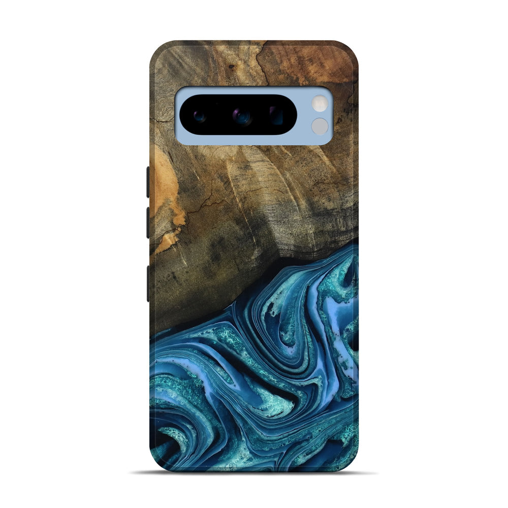 Our Live Edge cases are made from an amazing combination of stabilized wood burl and colored resin. Our stabilization process hardens the wood to protect against cracks and breaks. We do every step of the process at our shop in Northern Indiana. Perfectly fits the Pixel 8 Pro.