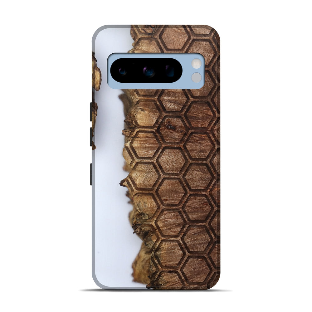 Our Live Edge cases are made from an amazing combination of stabilized wood burl and colored resin. Our stabilization process hardens the wood to protect against cracks and breaks. We do every step of the process at our shop in Northern Indiana. Perfectly fits the Pixel 8 Pro.