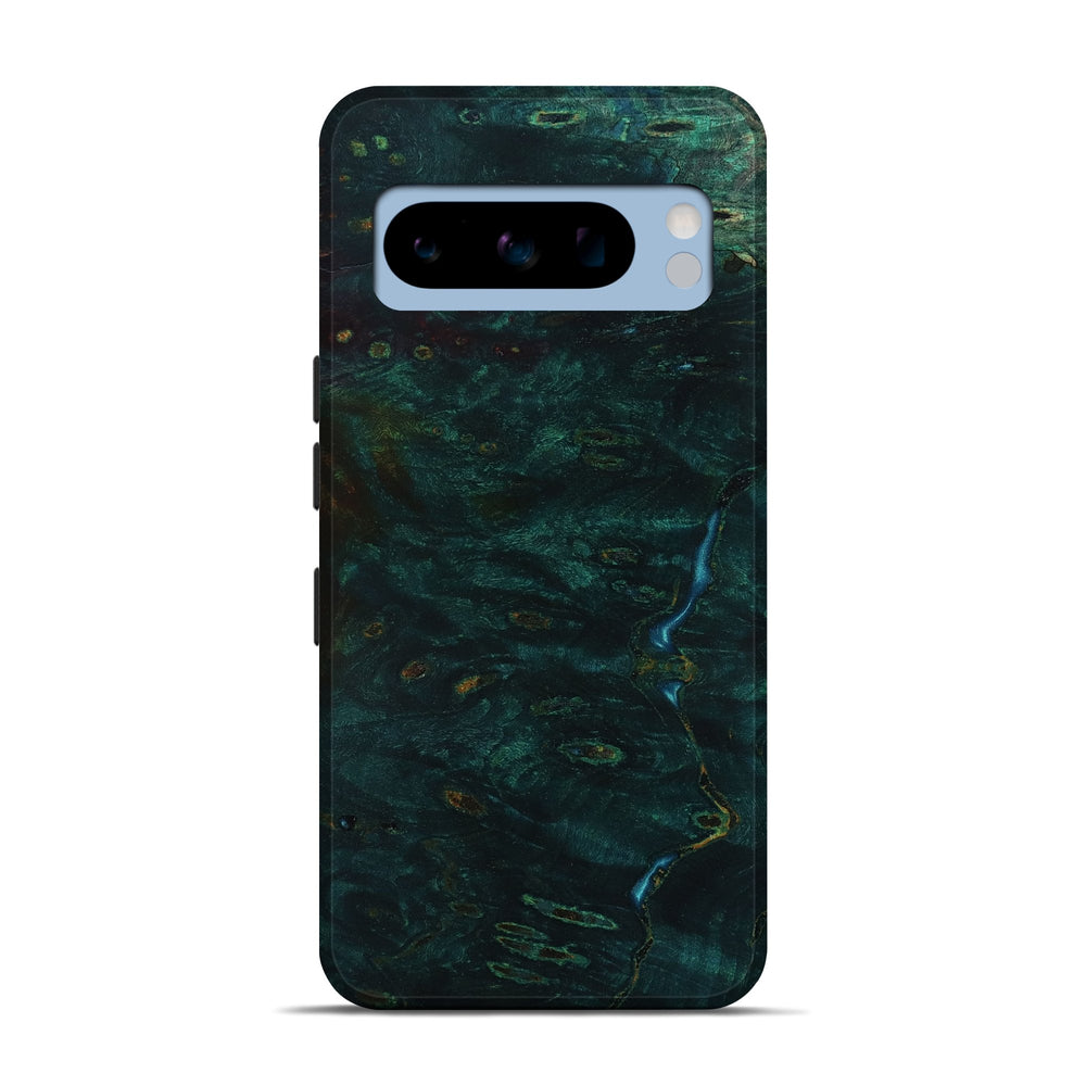 Our Live Edge cases are made from an amazing combination of stabilized wood burl and colored resin. Our stabilization process hardens the wood to protect against cracks and breaks. We do every step of the process at our shop in Northern Indiana. Perfectly fits the Pixel 8 Pro.