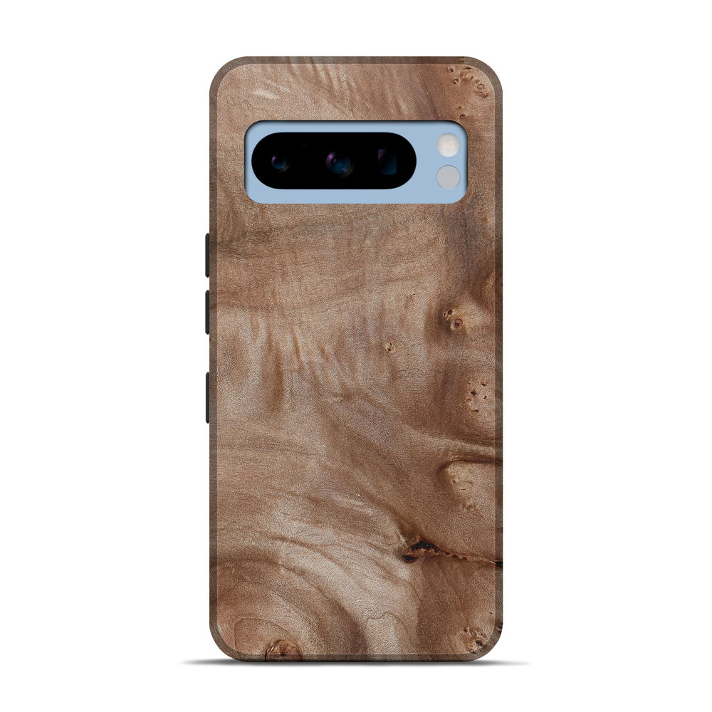 Our Live Edge cases are made from an amazing combination of stabilized wood burl and colored resin. Our stabilization process hardens the wood to protect against cracks and breaks. We do every step of the process at our shop in Northern Indiana. Perfectly fits the Pixel 8 Pro.