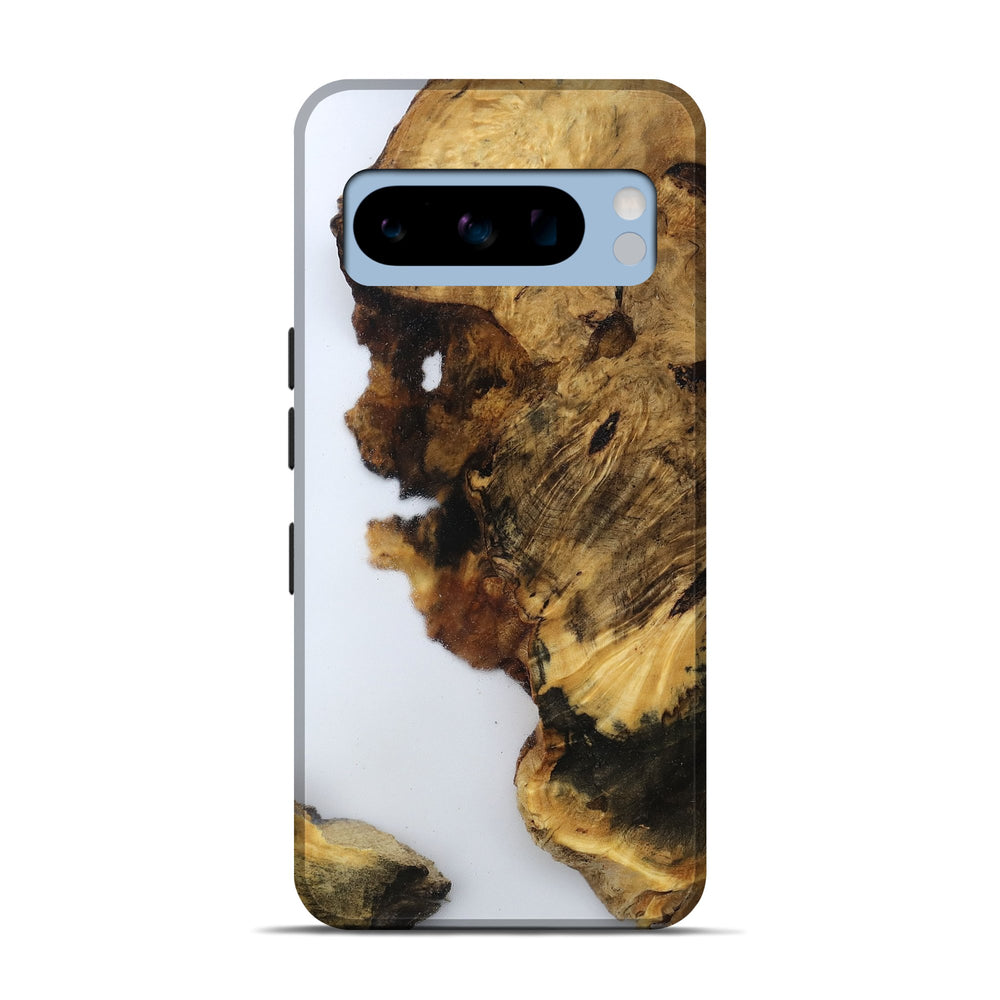 Our Live Edge cases are made from an amazing combination of stabilized wood burl and colored resin. Our stabilization process hardens the wood to protect against cracks and breaks. We do every step of the process at our shop in Northern Indiana. Perfectly fits the Pixel 8 Pro.