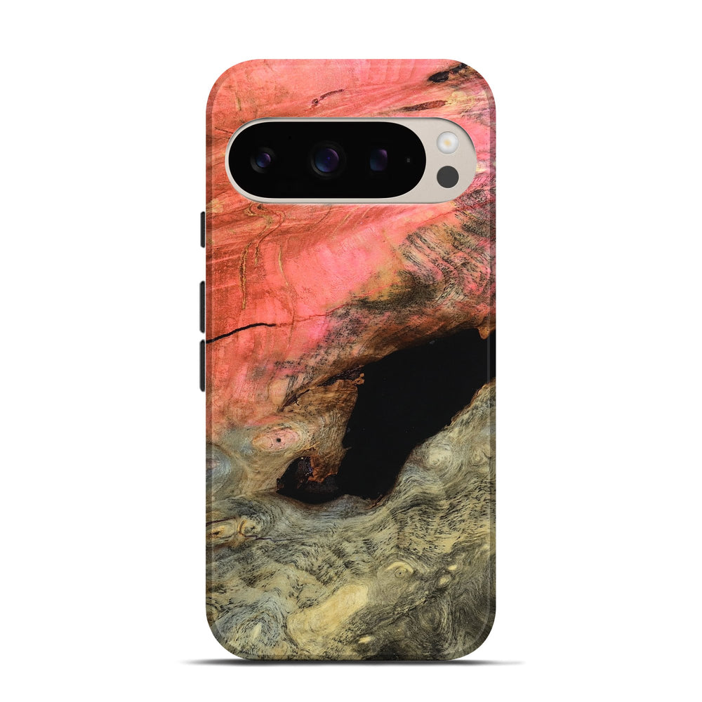 Our Live Edge cases are made from an amazing combination of stabilized wood burl and colored resin. Our stabilization process hardens the wood to protect against cracks and breaks. We do every step of the process at our shop in Northern Indiana. Perfectly fits the Pixel 9 Pro.