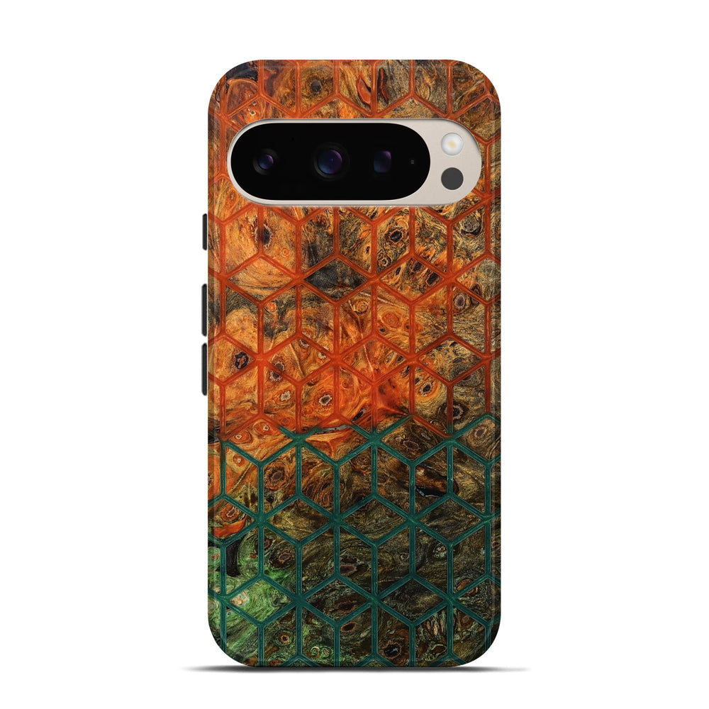 Our Live Edge cases are made from an amazing combination of stabilized wood burl and colored resin. Our stabilization process hardens the wood to protect against cracks and breaks. We do every step of the process at our shop in Northern Indiana. Perfectly fits the Pixel 9 Pro.