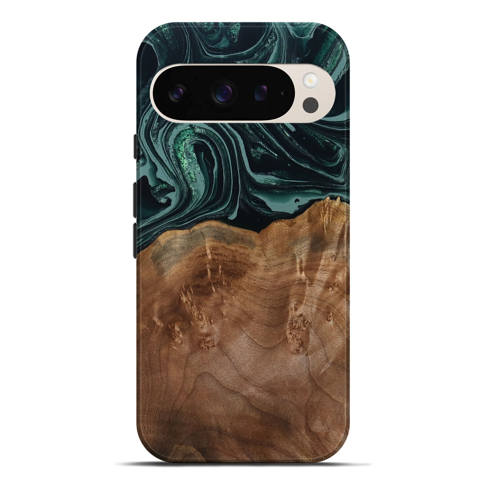 Our Live Edge cases are made from an amazing combination of stabilized wood burl and colored resin. Our stabilization process hardens the wood to protect against cracks and breaks. We do every step of the process at our shop in Northern Indiana. Perfectly fits the Pixel 9 Pro XL.