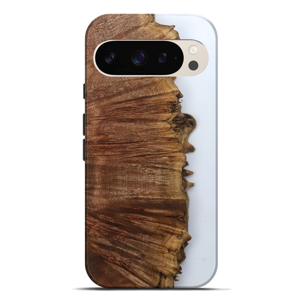 Our Live Edge cases are made from an amazing combination of stabilized wood burl and colored resin. Our stabilization process hardens the wood to protect against cracks and breaks. We do every step of the process at our shop in Northern Indiana. Perfectly fits the Pixel 9 Pro XL.