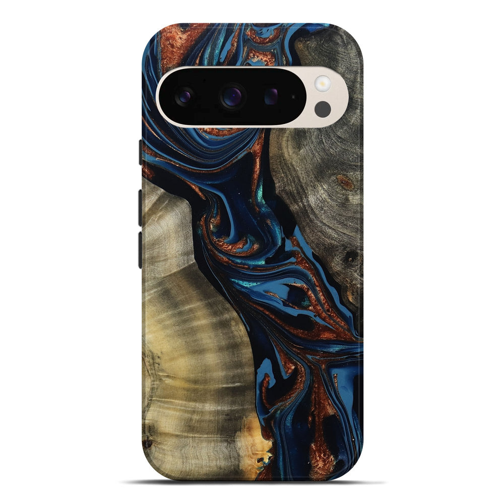 Our Live Edge cases are made from an amazing combination of stabilized wood burl and colored resin. Our stabilization process hardens the wood to protect against cracks and breaks. We do every step of the process at our shop in Northern Indiana. Perfectly fits the Pixel 9 Pro XL.