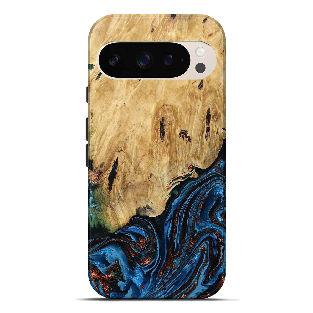 Our Live Edge cases are made from an amazing combination of stabilized wood burl and colored resin. Our stabilization process hardens the wood to protect against cracks and breaks. We do every step of the process at our shop in Northern Indiana. Perfectly fits the Pixel 9 Pro XL.