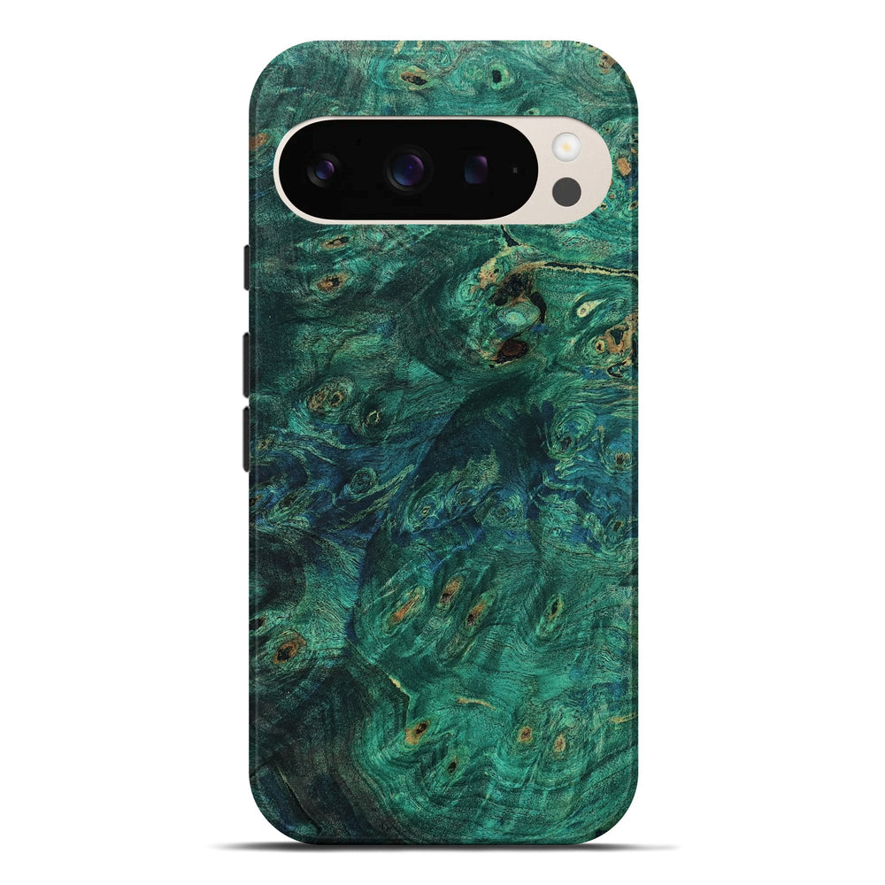 Our Live Edge cases are made from an amazing combination of stabilized wood burl and colored resin. Our stabilization process hardens the wood to protect against cracks and breaks. We do every step of the process at our shop in Northern Indiana. Perfectly fits the Pixel 9 Pro XL.